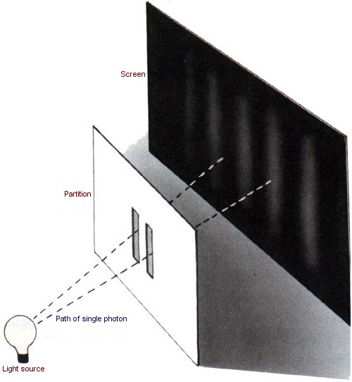 También me creo, aunque con salvedades, que según la mecánica cuántica, al haber dos posibilidades (dos agujeros en la barrera), el fotón se comporte como una onda y pase por las dos rendijas a la vez (como si el balón de Cristiano pasara por dos agujeros de la barrera, ¡qué chungo!).